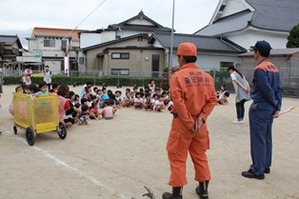 (年に一回 益田広域消防本部の立会いの下 実際に消防署へ通報そして避難・消火訓練を実施しています。)