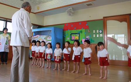 年長~年少組を中心に毎朝 ラジオ体操等で一日の園生活に備えて体作りに励んでいます。