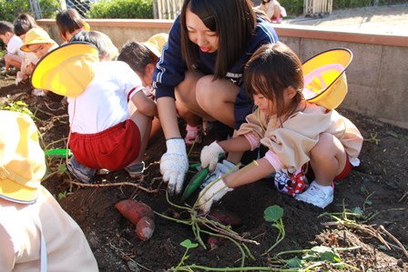 【芋掘り】10月 園庭の畑で毎年実施 対象児:3・4才児(年少・年中児)