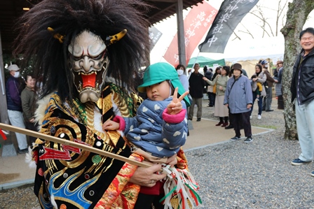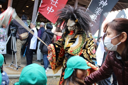 *午前中 地元 高津柿本神社で開催される「節分」行事に参加。神楽を観たり、地域の方々に交じって豆まきに参加したりします。対象児:年少~年長